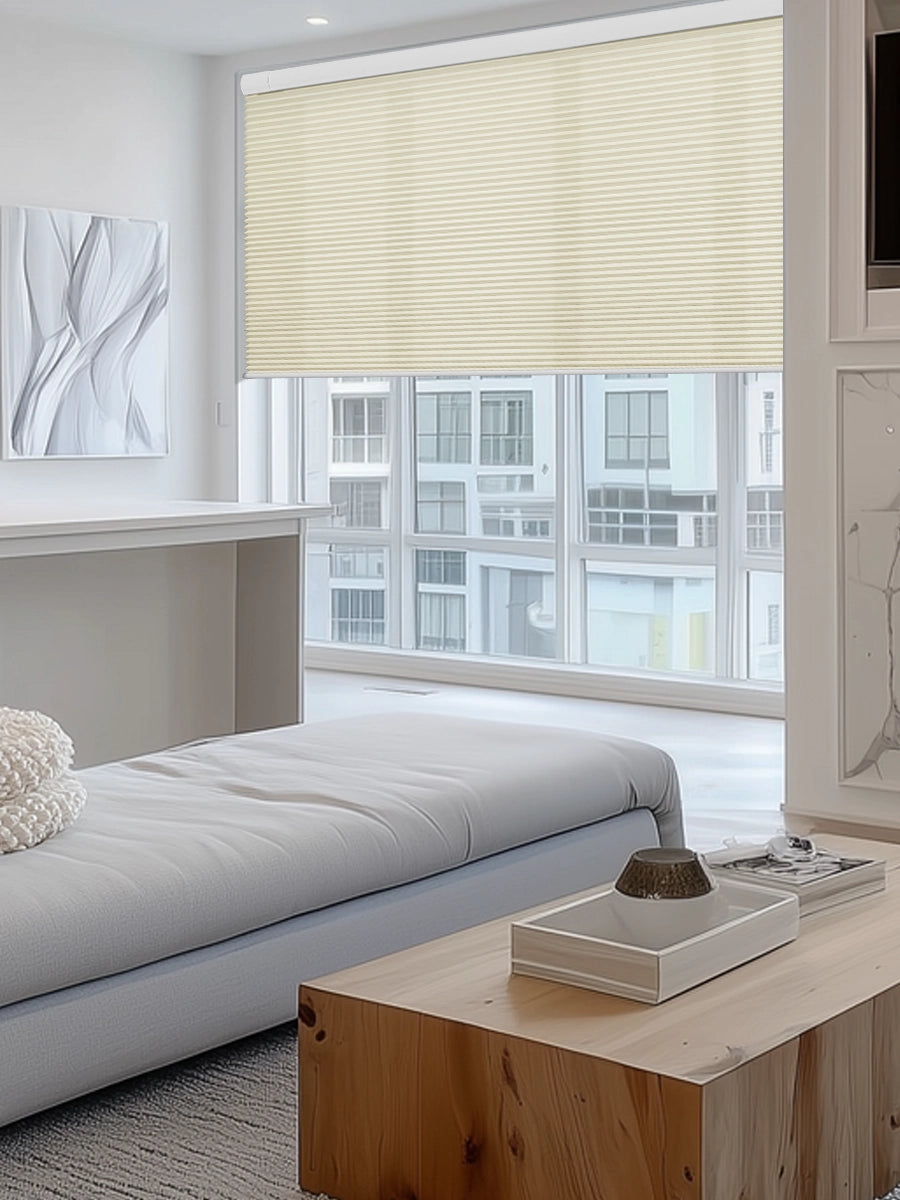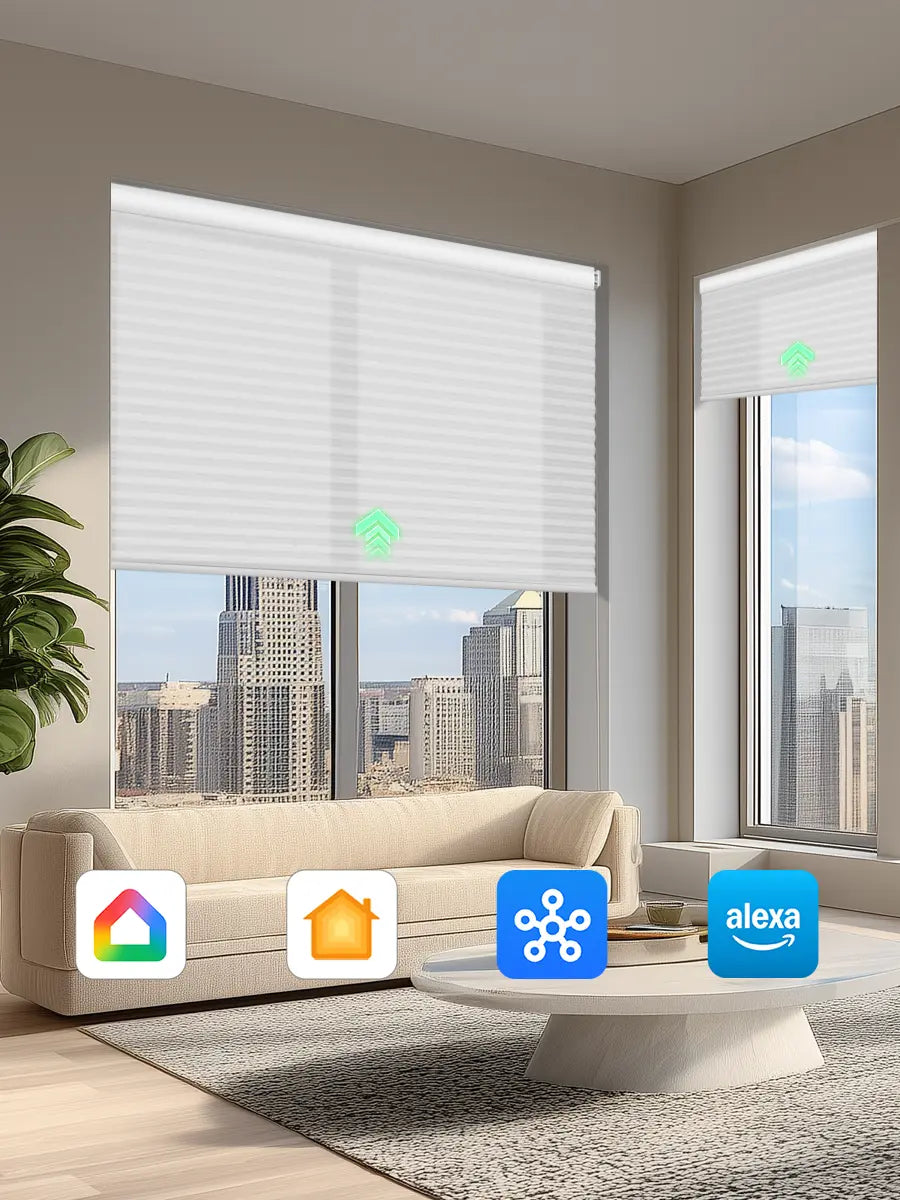 Smart electric cellular shades feature a quiet motor and smart control system: adjust the shade with one tap via remote, mobile app, or voice command—no manual pulling required. Paired with the honeycomb structure’s insulating temperature-control property, it softens light to keep your space comfortable while supporting remote scheduling to match your daily routine. With zero-operation barriers, fitting the smart living needs of bedrooms, living rooms, and more scenarios.