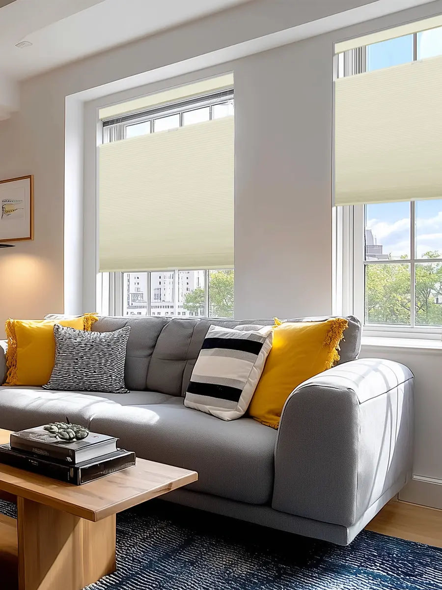 Top-down/bottom-up cellular shades feature a dual-adjust design: Lowering top-down blocks overhead light and secures space privacy, while maintaining comfortable body temperature via the honeycomb structure’s insulating temperature-control property; Raising bottom-up preserves bottom natural light, avoids direct glare, and keeps views unobstructed while softening light. It fits neatly to window shapes after installation, ideal for bedrooms, studies, and more spaces—effortlessly balancing light, privacy, and space comfort.